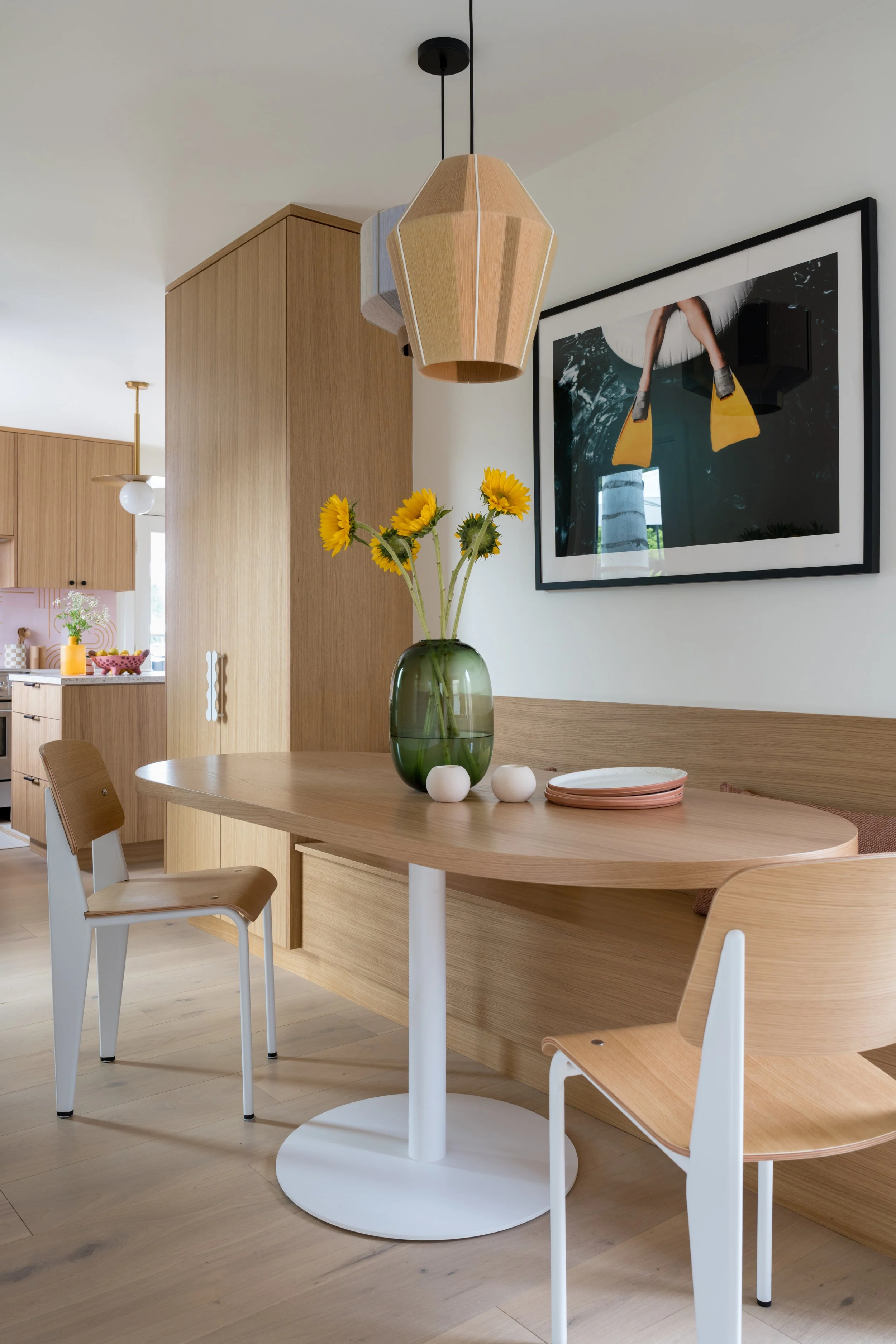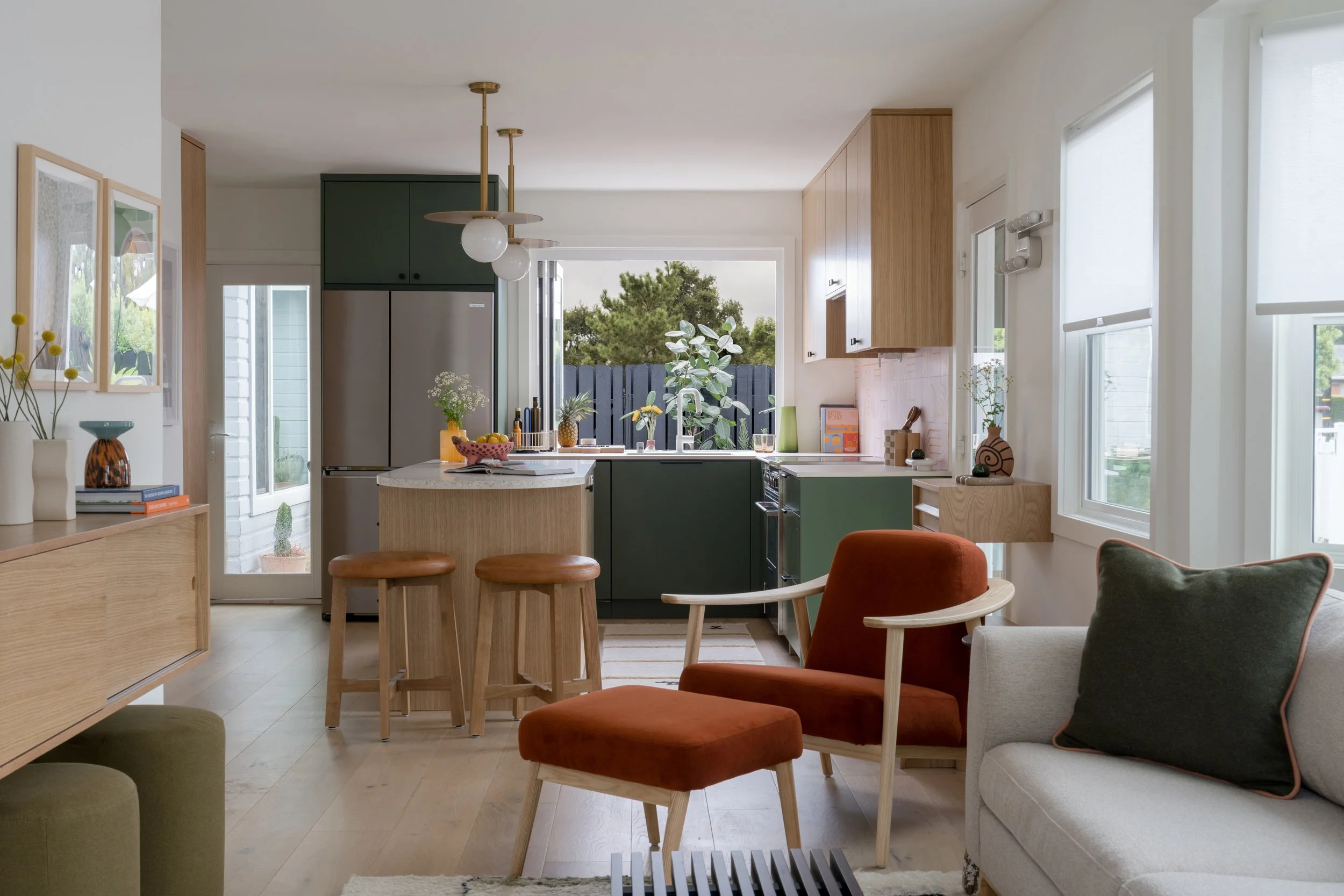 This project embraces colour and creativity to create a warm, family-friendly home. Playful design moments are paired with smart architectural updates, including a new pass-through window and side patio door that connect the interior to an underused outdoor space. The result is a brighter, more functional home designed for everyday family life.